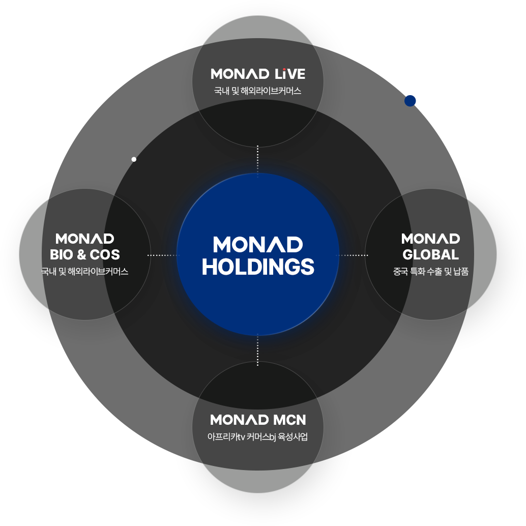 모나드홀딩스는 국내 1위 라이브 커머스인 모나드라이브를 중심으로